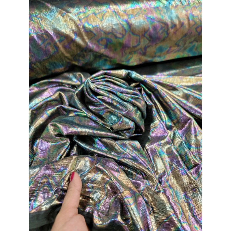 Divas Textiles Multicolor Metallic Spandex Stretch Fashion Dress Clothing Draping Water