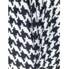 This black and white houndstooth print fabric by Divastyletextiles is perfect for creating a variety of clothing and accessories. It is made of a synthetic blend of polyester and nylon, with spandex added for stretchiness. The fabric is available in yards and comes in a medium weight.