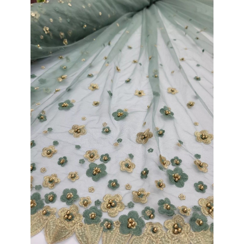 Sage Lace 3d Floral Flowers Embroidered Mesh Prom Fabric Sold by the Yard Quinceañera Bridal Prom Dress 54" Width ●FLORAL FLOWERS EMBROIDERY