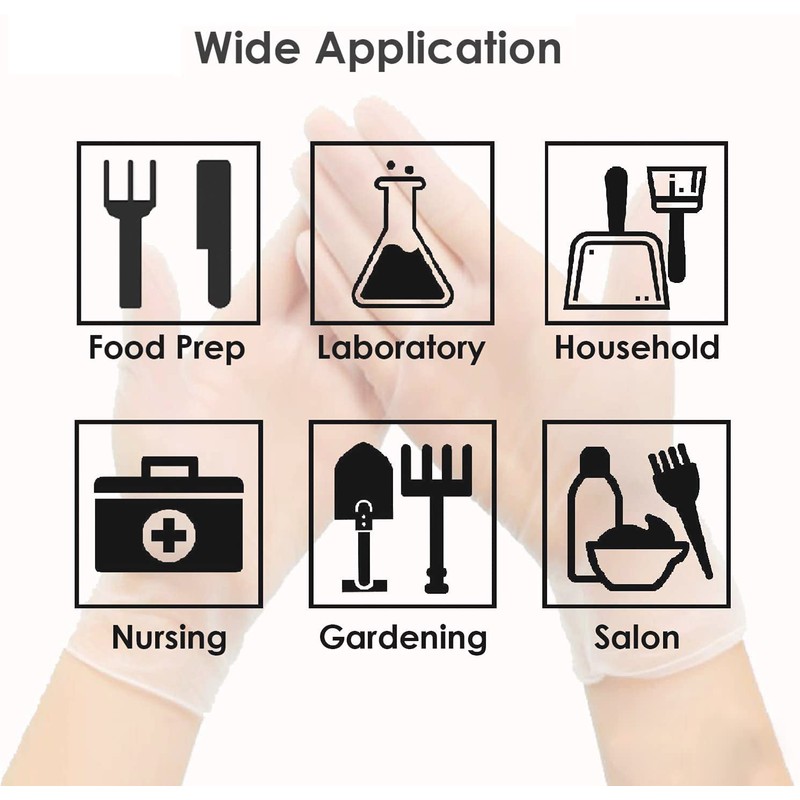 - 【 Clear Vinly Gloves 】: Vinly gloves are ideal for a wide range of tasks such as cooking,Gardening,cleanning, High Quality Gloves Medical and professional uses and can be used by hairdressers and beauticians.