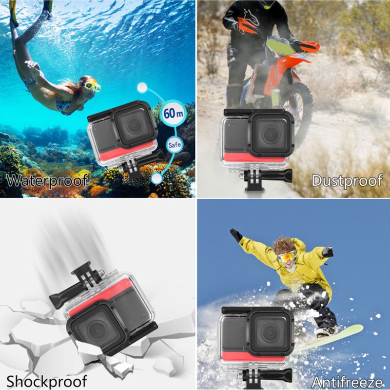 1、30m Waterproof: The waterproof case can effectively prevent water leakage. You can use it to record deep underwater activities without worrying about leaks. 2、PC Material: It is made of PC material with high toughness and light transmission, which is not only corrosion resistance, but also free from the influence of the shell on the picture light when shooting. 3、Professional Design: Specifically designed for Insta360 One RS camera, it fits perfectly and is tightly sealed to provide the ultimate protection for your camera. 4、Total Protection: The dive case is durable enough to guard your camera lens and display from high impact drops, dents and scratches. With elastic buckle, it is easy to assemble. 5、Wide Application: The waterproof dive case can be used during extreme outdoor activities, deep water diving, surfing, snorkeling and other water sports activities.