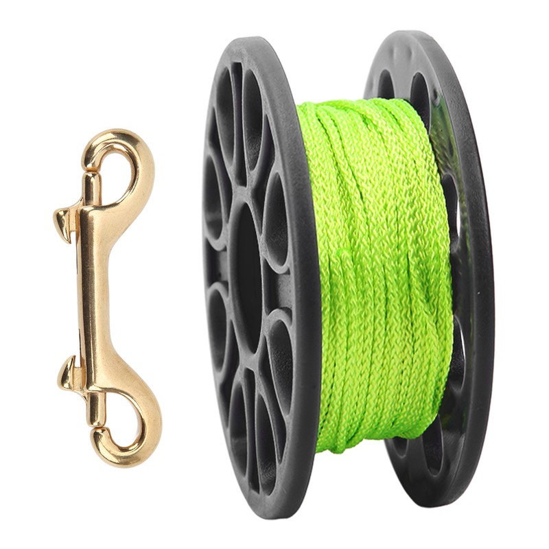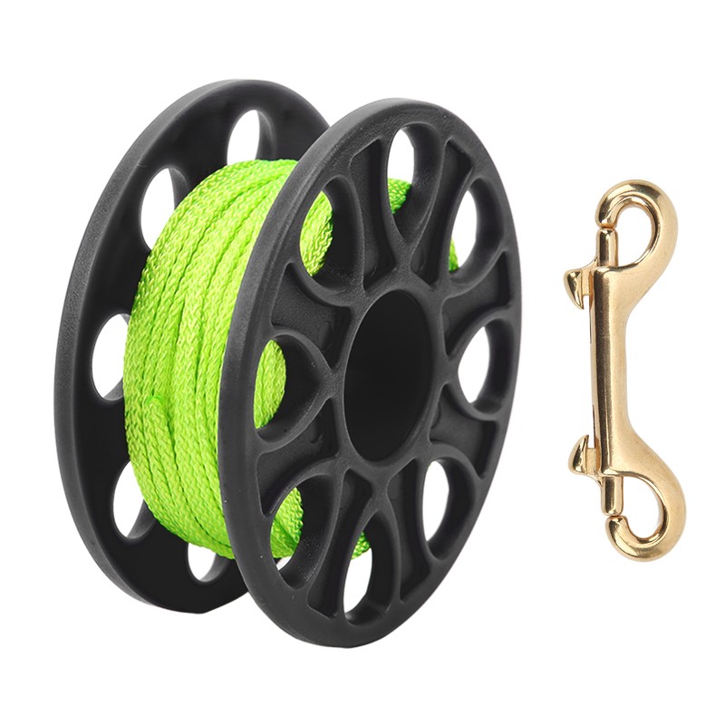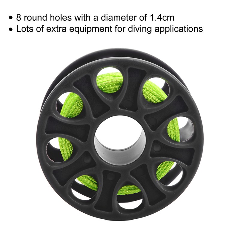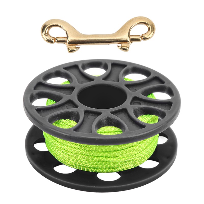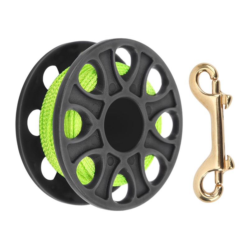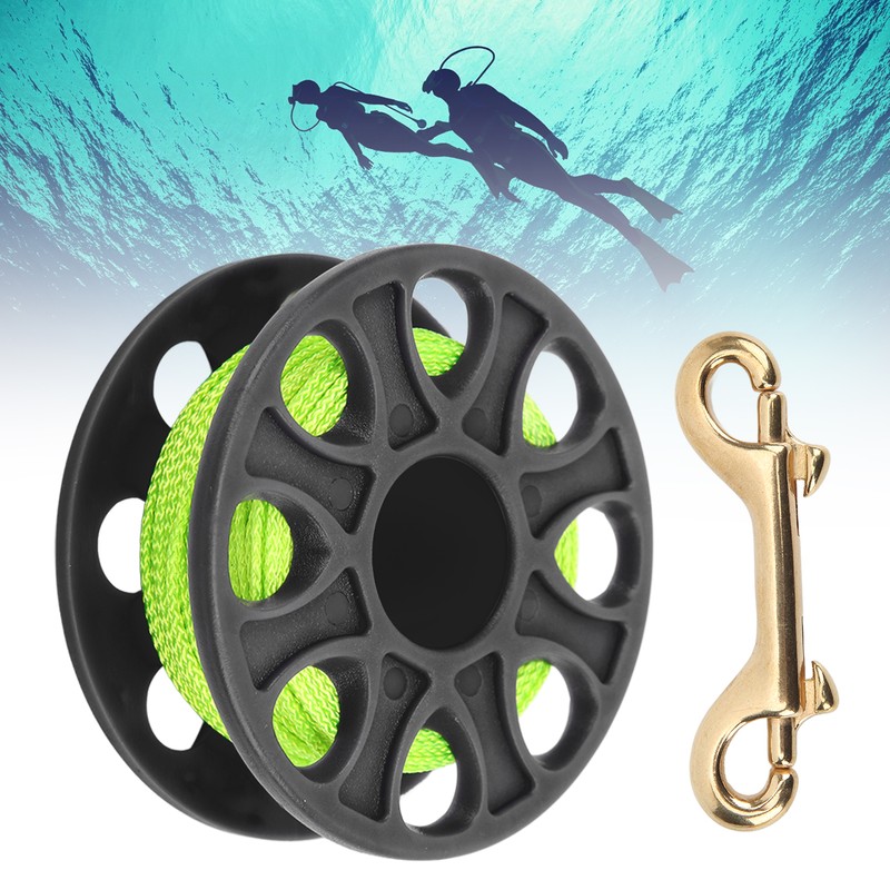 Dive Reel Fluorescent Green Line Plastic Material Copper Double Ended P Hook 30 Meters Cable Length Diving ReelsBlack
