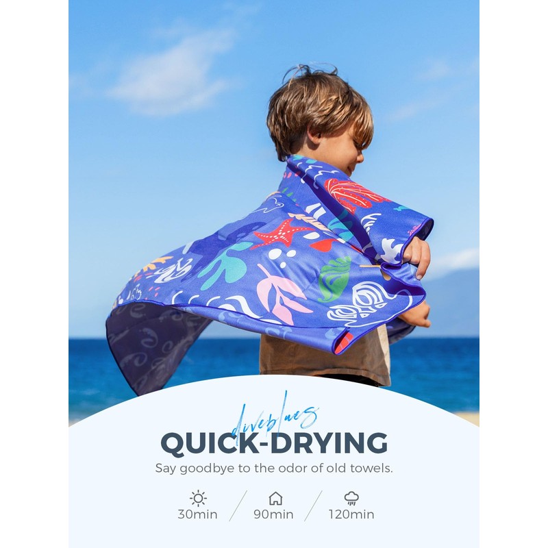 Diveblues Kids Microfiber Beach Towel - Quick Dry, Sand Free - Compact, Lightweight, Absorbent, Small (152x76cm, 60''x30'')