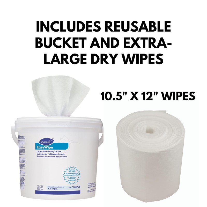 Get cleaning with the Diversey EasyWipe Disposable Wiping System Refill. Compatible with a variety of Diversey cleaners, disinfectants, and sanitizers, EasyWipes can be used on all hard, non porous surfaces that are outlined on the chemical label. The high quality fibers allow for easy pick-up and removal of dirt, dust, and other soils and do not bind with cleaning chemicals or disinfectant actives. A bucket closure system allows the wipes to be used across shifts, saving time and money while also reducing chemical waste. Individual wipers in an enclosed system reduce the risk of surface cross-contamination, chemical splashes, and spills. This product is ideal for facilities with no laundering capabilities. These wipes are designed for use in a wide variety of applications including healthcare, education, retail, BSC, government, lodging industries.