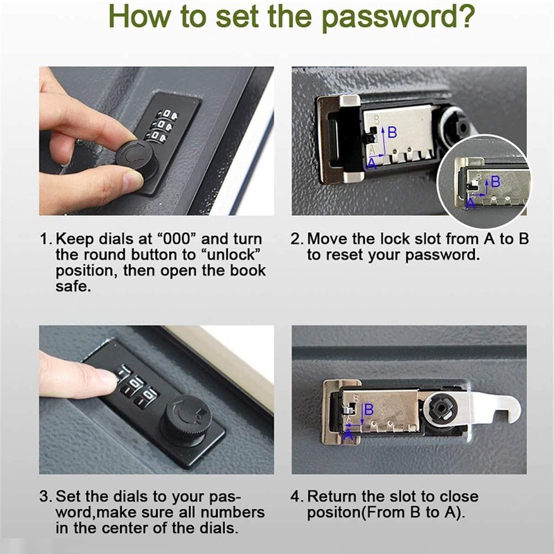 - Looks like a real book and will blend seamlessly into your bookshelf contains a metal safe with combination lock