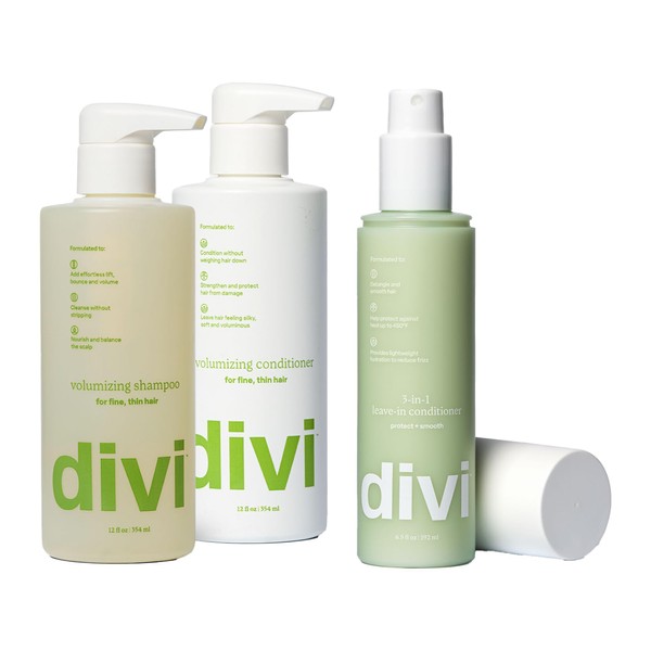 Divi Wash Day Essentials for Fine and Thinning Hair, Volumizing Shampoo, Conditioner, Leave-In Conditioner, 3-Piece Set