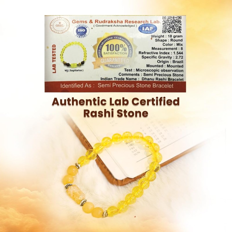 Divine Hindu Divine Hindu Citrine Crystal Bracelet | Dhanu Rashi (Sagittarius) Zodiac Stone | Certified Natural Healing Crystal | Reiki | Chakra Balancing | Meditation | for Men & Women