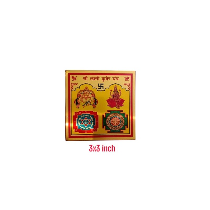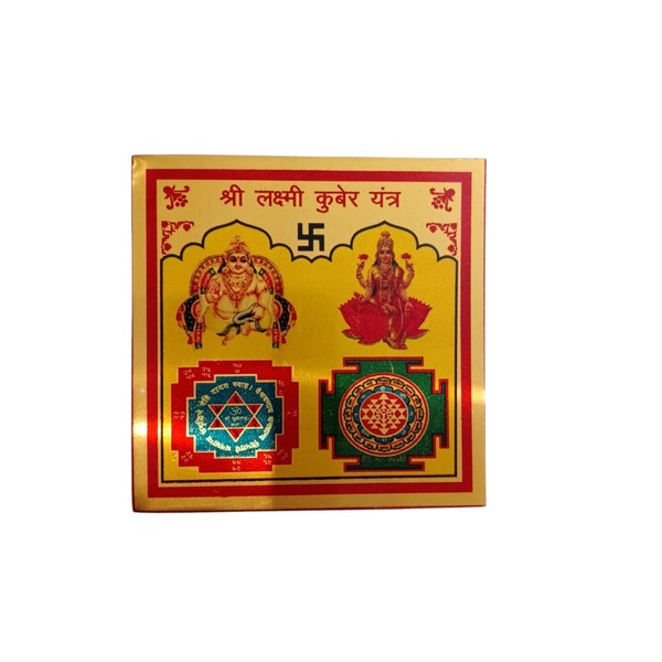 Divine-Interiors Shree Lakshmi Kubera Yantra Golden Plated for Wealth & Power (3 x 3 inch) Pack of 1