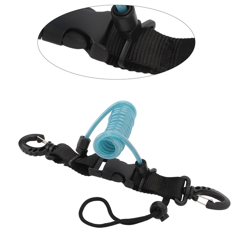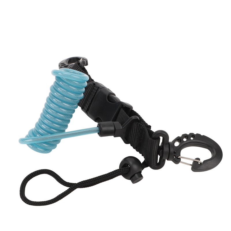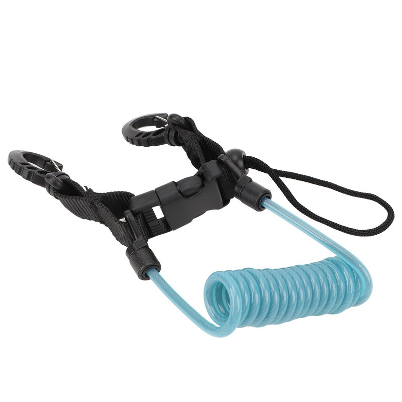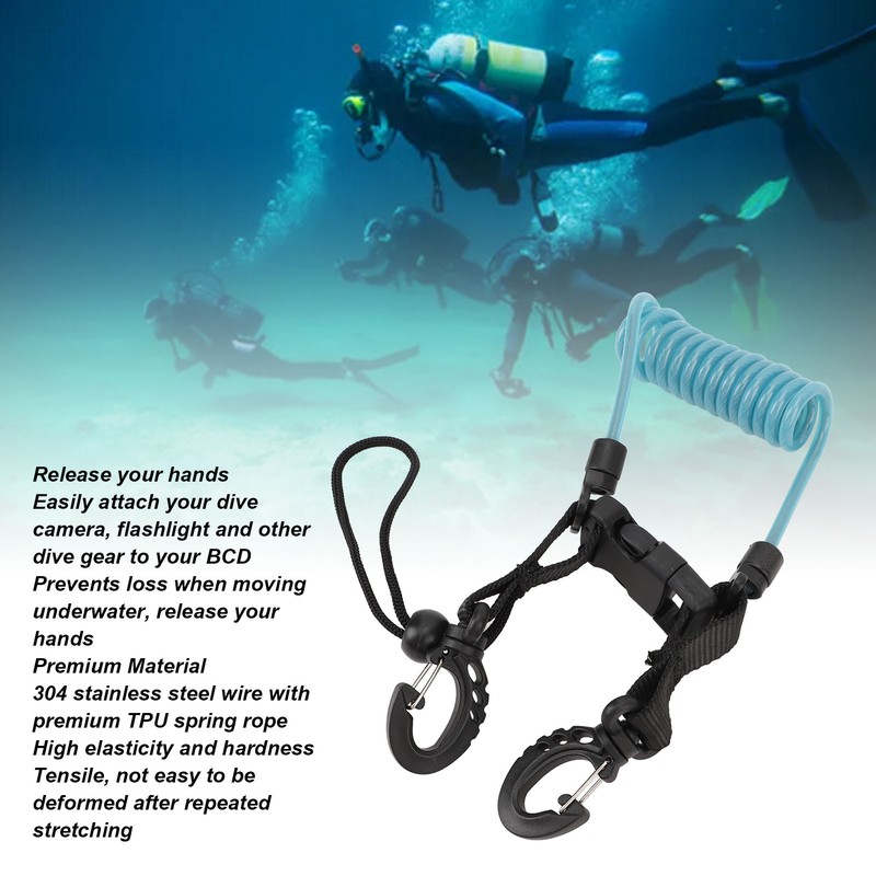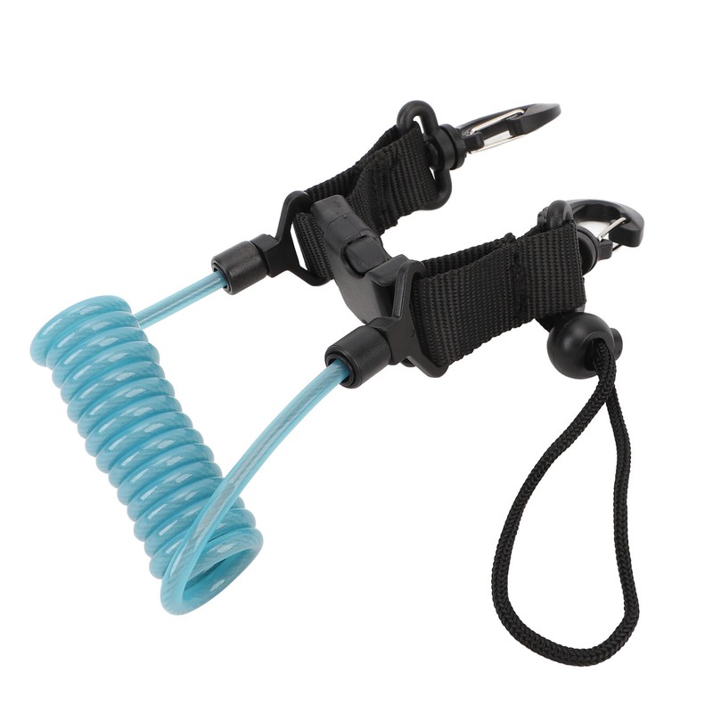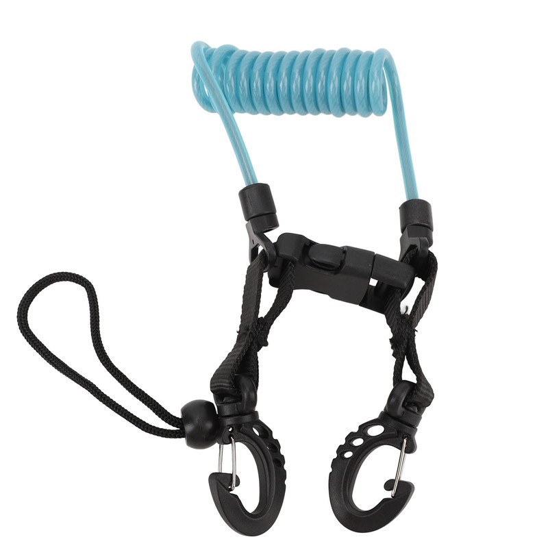 Diving Camera Lanyard Quick Release Buckle Stainless Steel Wire Spring Coiled Camera Lanyard for Light Tool Lake Blue