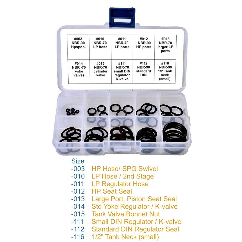 • Contains the most common for O-ring for BCD, regulators and hoses