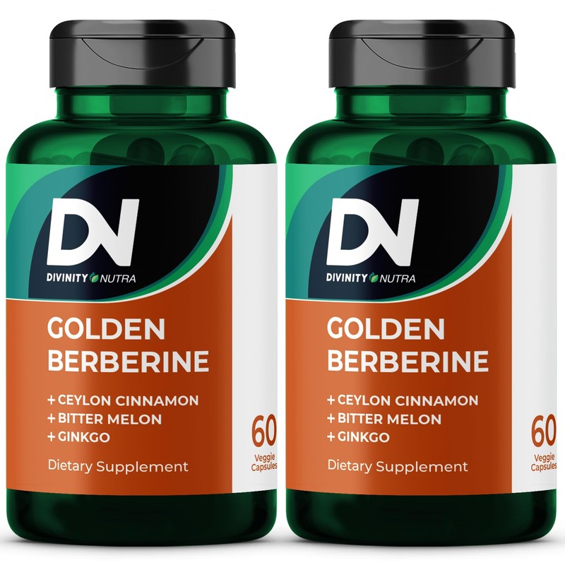 Divinity Nutra Golden Berberine Supplement with Bitter Melon, Ginkgo Biloba and Ceylon Cinnamon, Vegan, Made in USA Berberine Capsules for Women and Men 2 Bottles, 60 Capsules Each