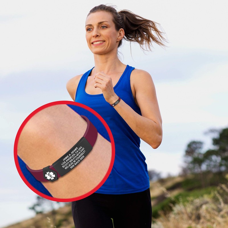 Divoti Sport ID Medical Alert Bracelet – Personalized Medical ID Bracelet – Trim-to-Fit Adjustable Various Silicone Band w/Security Clasp & Dual-Side Engraving