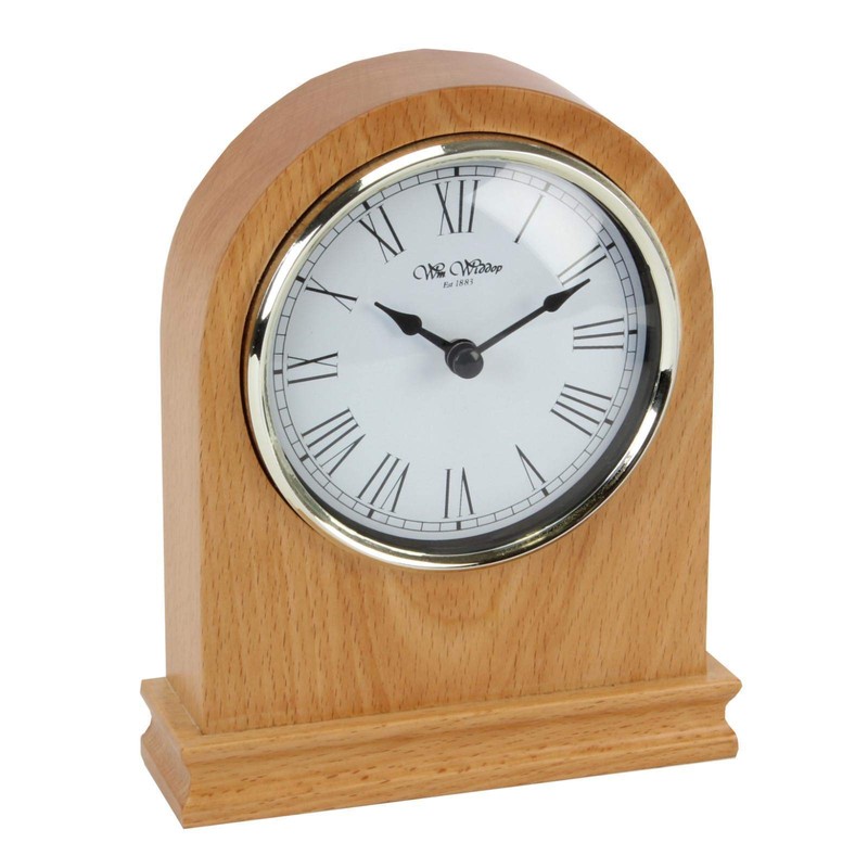 DIW Oak Effect Arched Wooden Mantel Table Clock Roman Numerals 17cm