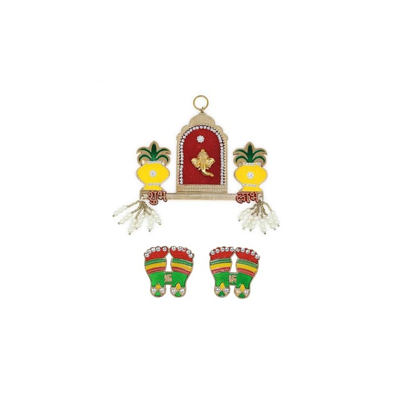 Diwali Ganesh Shubh Labh Acrylic Rangoli Set with Laxmi Charan Pagla Wall Hanging | Acrylic Kalash Design Shubha Labh & Laxmi Padhuka for Home Office Temple Mandir Pooja | Traditional Festival Décor