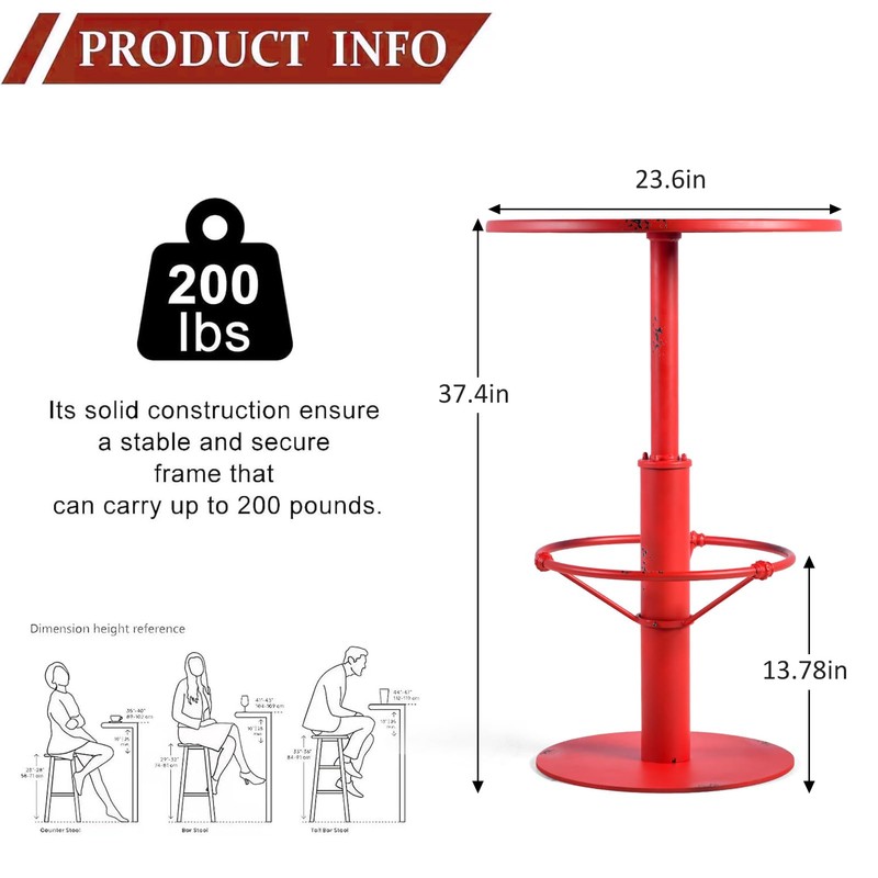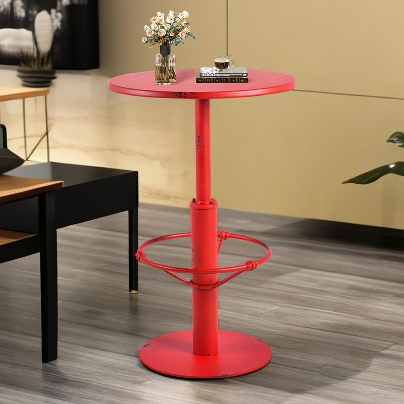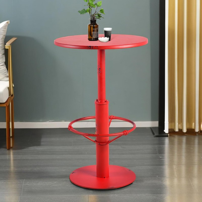 - 【Stylish Design】The industrial style pub table features a round tabletop and a stylish metal frame, adding a touch of elegance to your home or bar. The red metal finish give it a modern and sophisticated look.