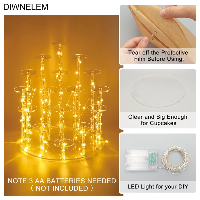 - 【DURABLE AND PREMIUM MATERIAL】The cupcake stand is made of great quality of food grade acrylic material,the acrylic boards and round plates are more sturdy and thicker,the boards are connected with screws,perfectly show your cupcakes and desserts on the parties.