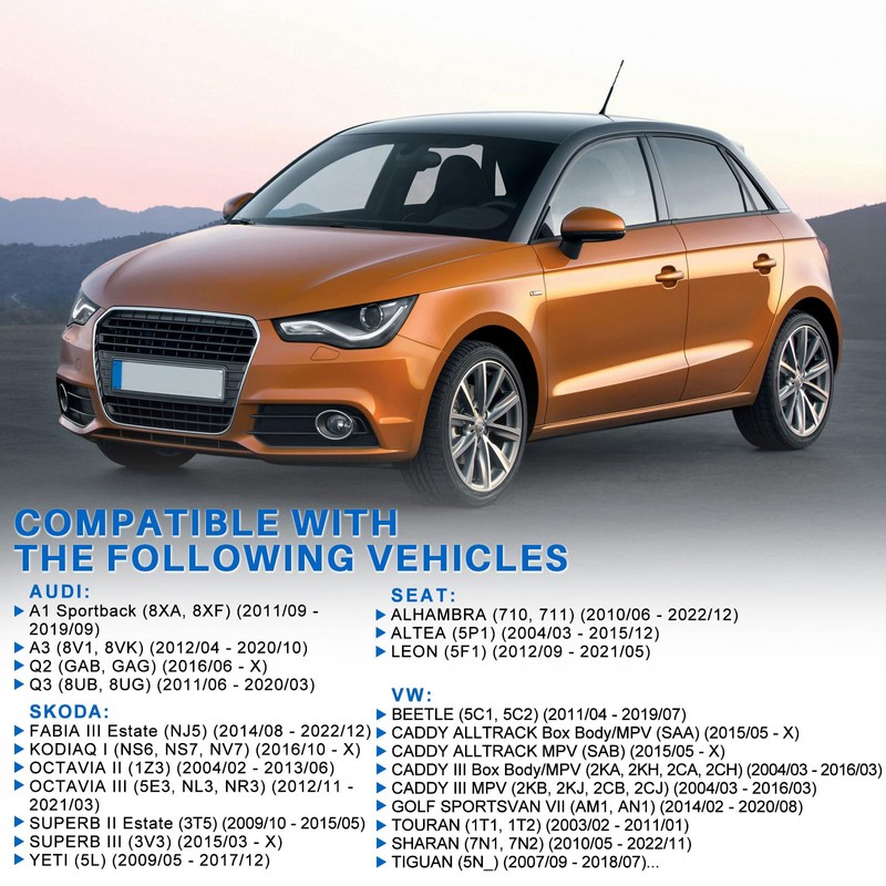 • This ignition lock cylinder with keys is compatible with: A1 8X1, 8XF (2010-2018), A3 8P, A3 Sportback (2003-2013), TT 8J (2007-2014), Q3 8U (2011-), Alhambra 710, 711 (2011-), ), altea, Altea XL (2004-), Leon 1P1 (2005-), Toledo III (2004-), 1Z (2004-2013), Superb II 3T (2008-2013), Yeti 5L (2010-2013)