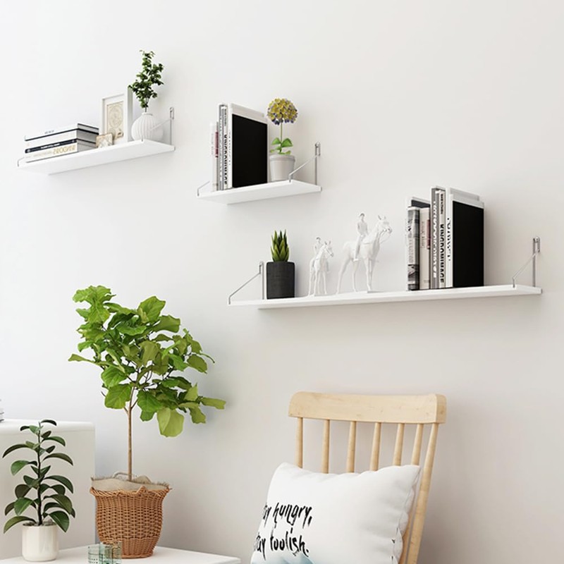 Dixiao 3Pack Wall Mounted Floating Shelves, White Shelves for Bedroom Modern Home Decor Wall Shelf (White, 30 * 15 * 1.5cm)