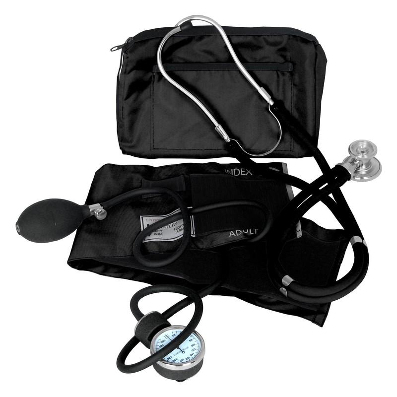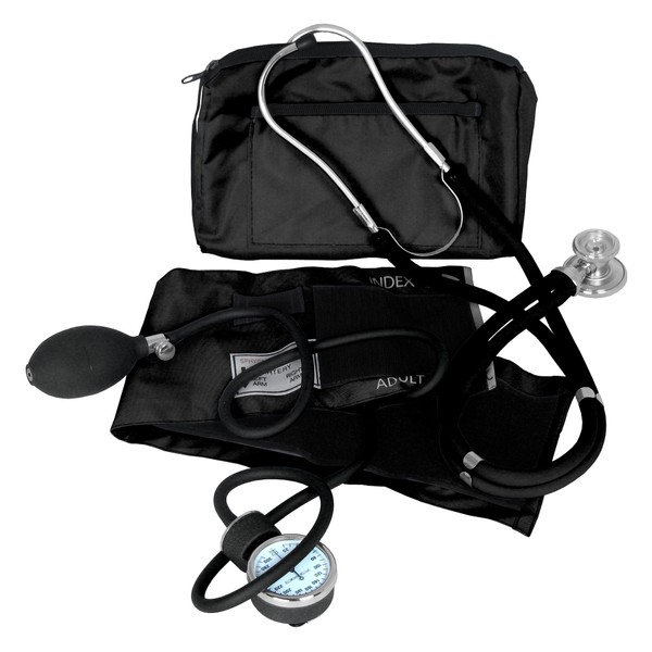 - A DELUXE KIT PERFECT FOR DOCTORS & NURSES - Two pieces of high quality medical equipment come bundled together in one convenient package. Dixie EMS offers their high quality aneroid sphygmomanometer adult blood pressure cuff along with a sprague rappaport stethoscope. In addition, your order comes with a complete accessory kit and a deluxe carrying case.