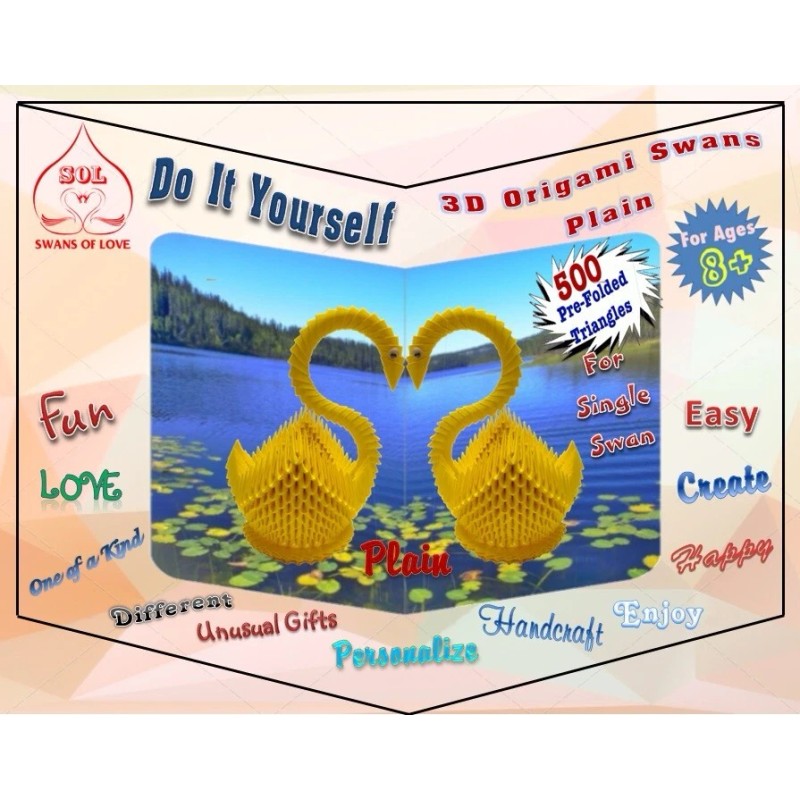 DIY 3D Origami Swan Kit With Plain Design - 500 Pre-folded Triangles