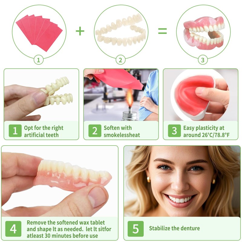 - Quick and Effortless Smile Restoration:With our user - friendly denture kit, you can rapidly craft your own dentures right at home. Engineered with top - tier, high - quality resin, this kit empowers you to customize and polish your dentures with absolute ease. The result? A radiant, perfect smile that looks entirely natural. By streamlining the denture - making process, you can achieve stunning results in a remarkably short time. Smile restoration has never been this simple and convenient.