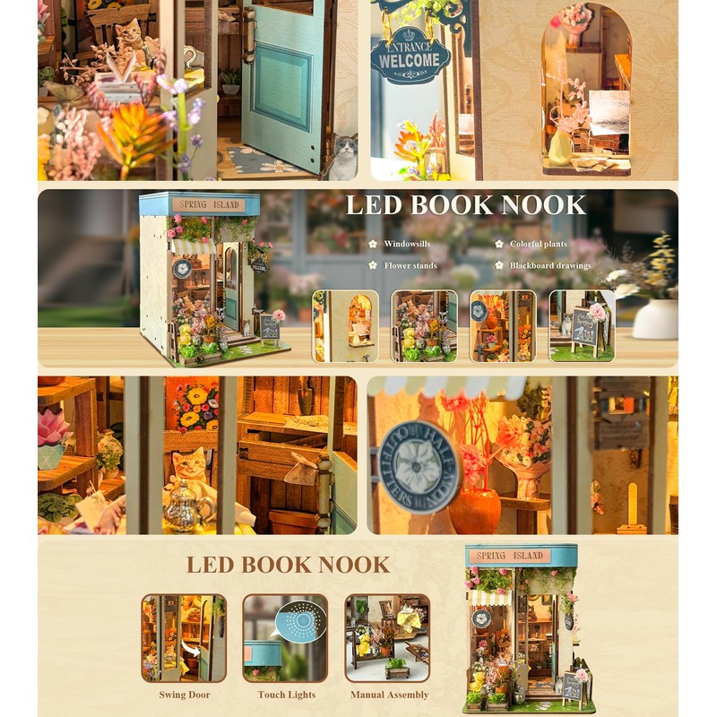 - 🖤 【Book Nook Kit】Florist' s on Spring lsle:In this noisy world, everyone has a quiet garden hidden in their hearts, eager to find a gentle place for the soul to inhabit in addition to the busy, in this flower house, each flower is telling a different story, waiting to resonate with your heart. Here, you can slow down and listen to the sound of flowers blooming and feel the rhythm of nature.