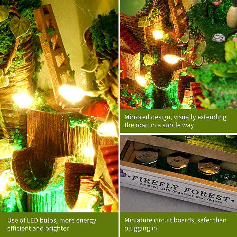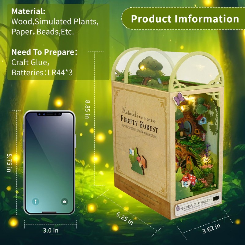 DIY Book Nook Kit, DIY Dollhouse Wood Bookend, Booknook Bookshelf Insert, DIY Miniature Dollhouse Kit, Bookends Model Build for Adult, Gift for Birthday- Firefly Forest