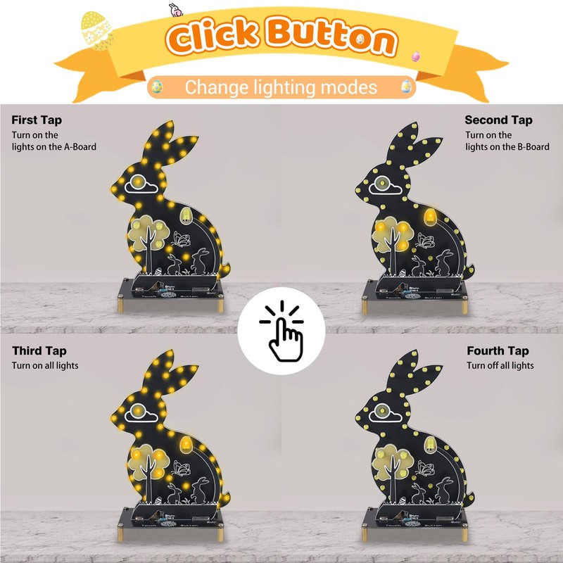 - ✨ Touch Control & 3 Lighting Modes: This rabbit night light soldering kit project features a touch-sensitive button to easily adjust lighting modes and brightness. Short press to switch between three lighting modes, and long press to adjust the brightness. From a soft glow for bedtime to a brighter light for reading or getting up at night, it lets you create the perfect ambiance for any moment.