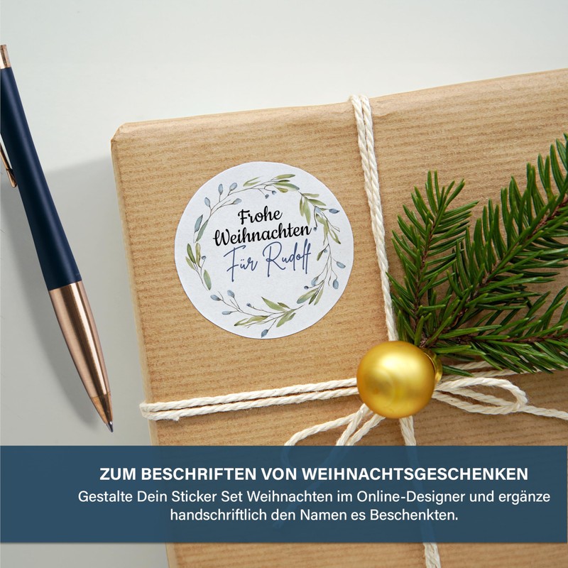 - Christmas stickers in addition: create your Christmas sticker set in the online designer and add the name of the recipient by hand. So you give your stickers an even more personal touch.