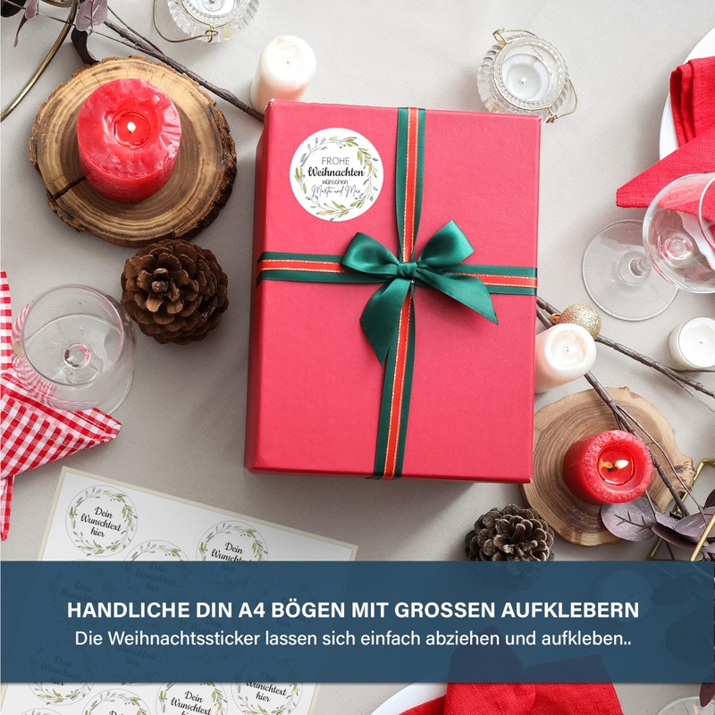 DIY Christmas Stickers - 40 Personalised Stickers - Sticker Sheets - Round Diameter 5 cm - Christmas Labels as Gift Stickers - Stickers with Name - Wreath - Motif 10