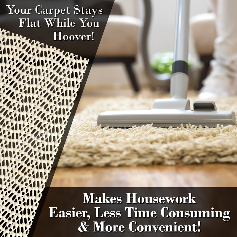 - PERFECT MATERIAL: The PVC material of our rug grip is waterproof and durable, non toxic and hand washable. The criss-cross design ensures maximum friction, keeping your family safe from any slipping rugs on any hardwood floors in your home