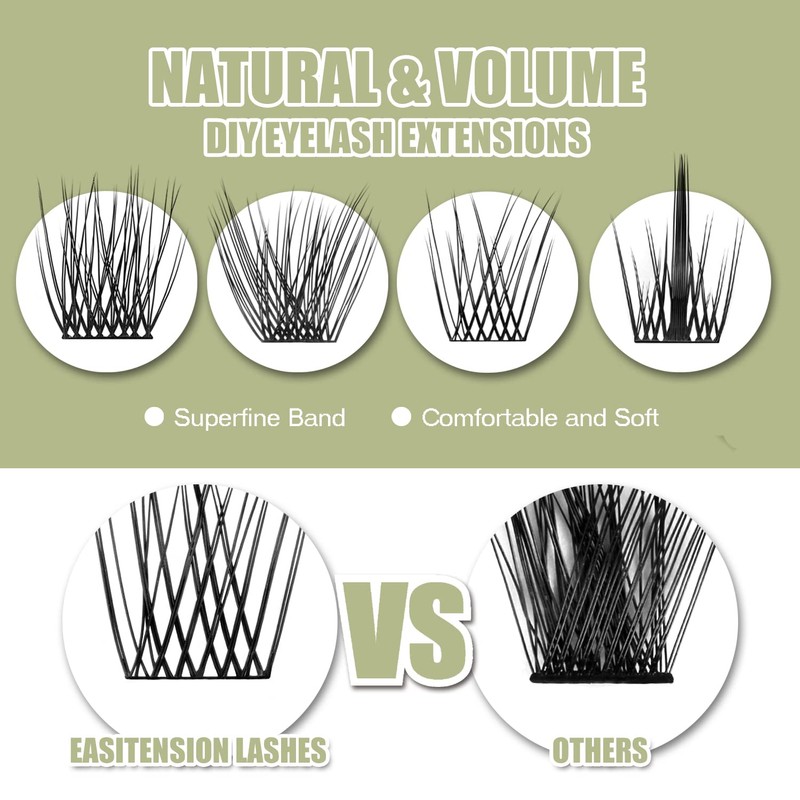 - DAILY WEARING & LONGER RETENTION: EASITENSION LASHES are made of high-quality Korean PBT material that soft, light and comfortable. The lash clusters are great for daily wear and have longer retention.