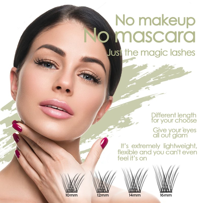 - LASH EXTENSIONS IN A WINK: The cluster lashes are easy to remove and apply which is exactly friendly to beginners. You can apply the DIY eyelash extensions in a wink. Save time and money and bring the salon home!