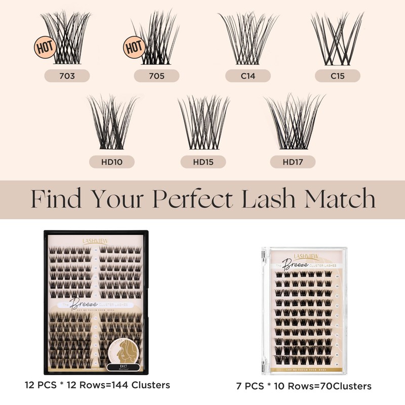 DIY Eyelash Extension Kit, Cluster Eyelash Extensions, Individual Lashes (D17, D-Mix(144 Pcs))