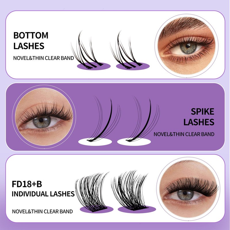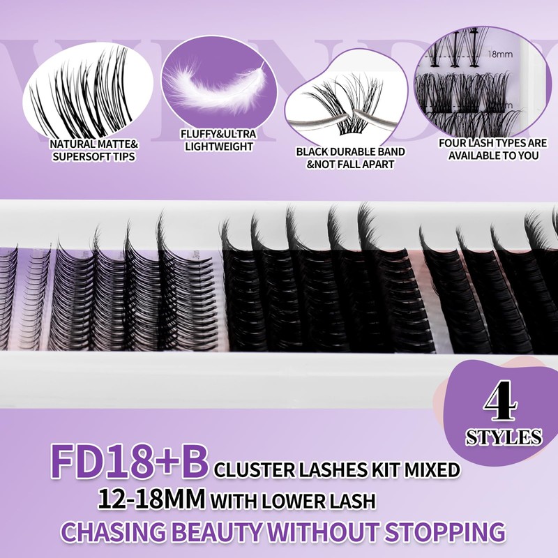 DIY Individual Lash Extensions Eyelashes Cluster Lashes 12-18 mixed D Curl Cluster Lash Nature Look Soft Wispy Cluster Eyelash Extensions(FD18+B-07-1218)