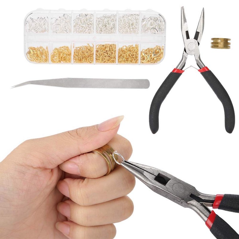 - X2605; Este kit de joyas es supercompleto: Trae todo lo necesario para hacer diferentes tipos de joyas. 1 caja de resultados de joyería, 1 alicates de punta plana, 1 abrelatas de anillas, 1 clip doblado