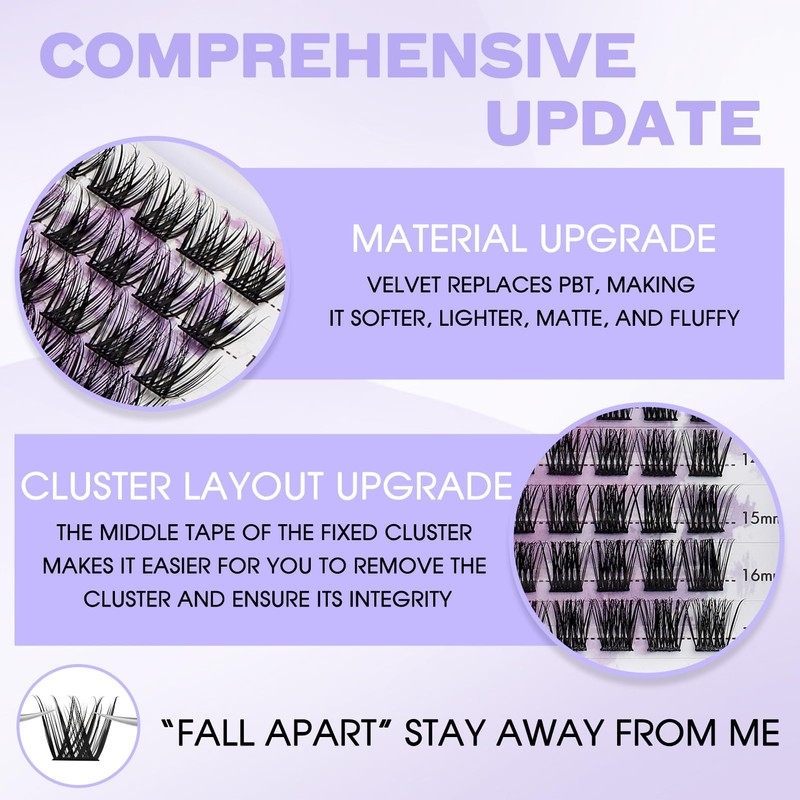 • Soft and Lightweight: The lash extension cluster is made of high-quality basf fiber, which is high-quality, soft, lightweight, matte and non irritating eyelash clusters, realistic look and long-lasting to wear.