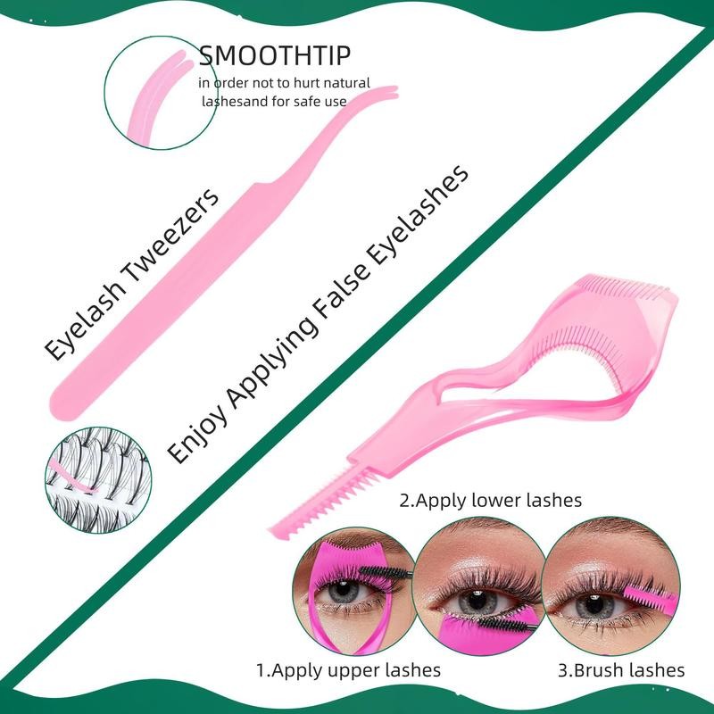 DIY Lash Kit, 1 Set Individual False Eyelash Extensions with Lash Glue & Lash Remover & Tweezers & Brush & Headband & Wristbands, Eyelash Enhancing Tool for Women & Girls