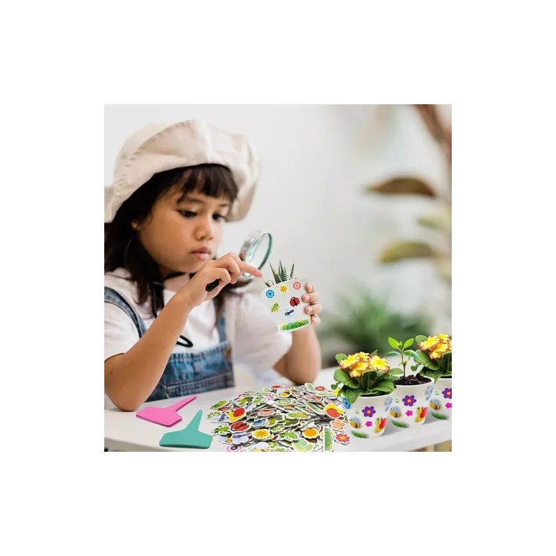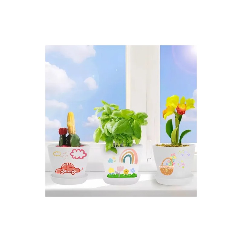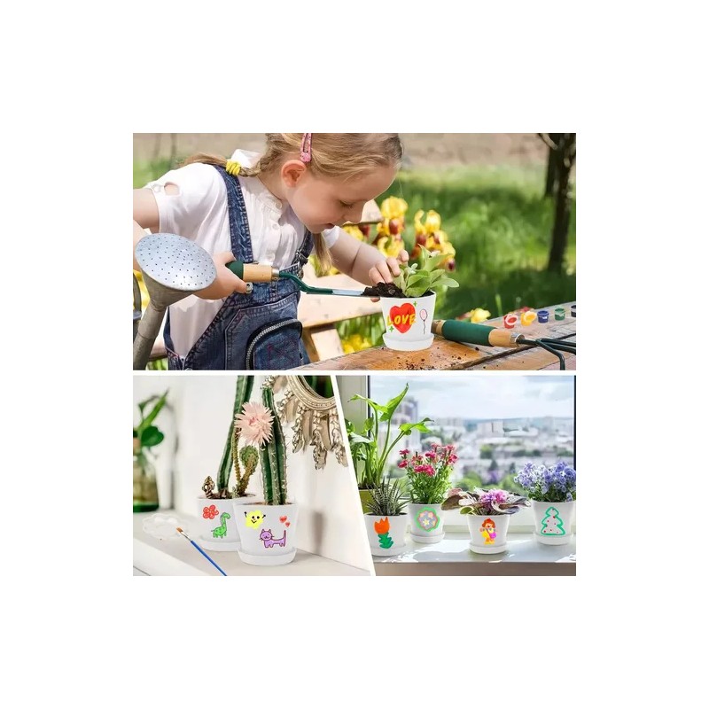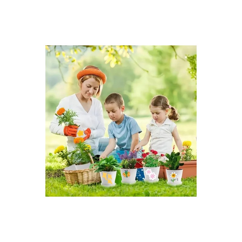 Puedes diseñar y decorar tus propias macetas con tus propias manos utilizando pinceles o pegatinas. Haz macetas divertidas y personalizadas