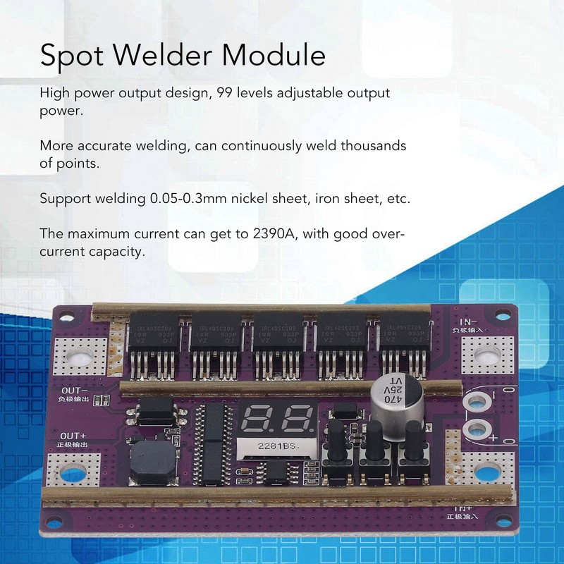 - GOOD CONTROL This spot welding control module activates the number display. The welding control board has 99 levels and the maximum current can reach 2390A.