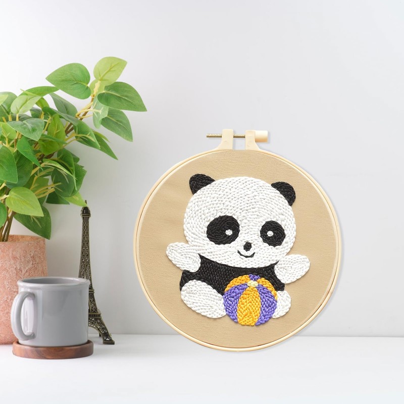 DIY Panda Handcraft Punch Needle Embroidery Kit, Starter Set, Punch Needle, Circle Frame Embroidery, Beginners Embroidery, Children's Embroidery Set, Adults, Suitable for Beginners and Children