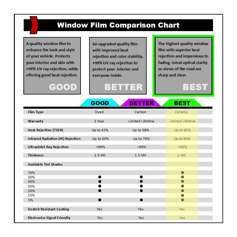 - Professional Automotive Film: Ceramic 1.5 mil thickness