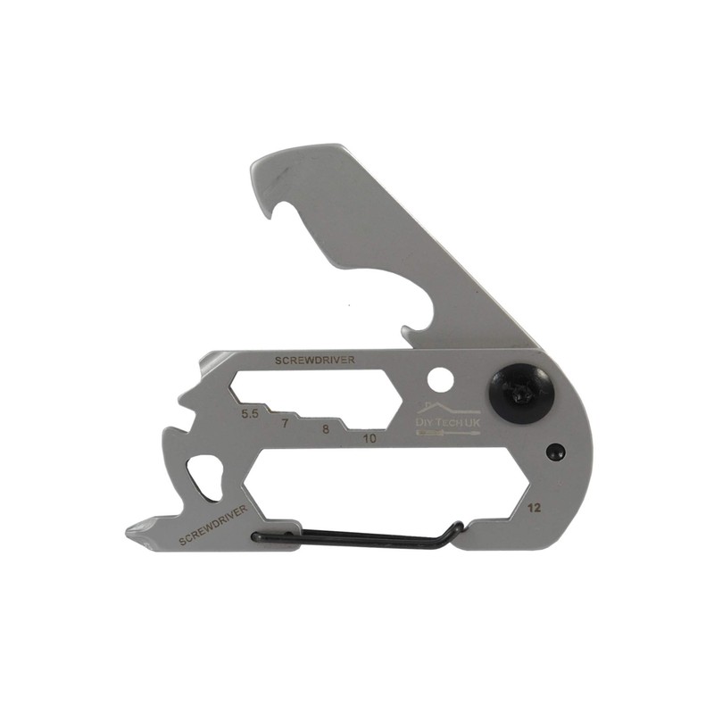 - 2) A TOOL PACKED WITH FUNCTIONS - This tool has 12 superb functions, it's really clever! It's packed with functions and is perfect for so many jobs. It encompasses one slotted screwdriver and one Phillips screwdriver, bottle opener, wrench, wire cutter, ruler, safety belt cutter and five spanners!