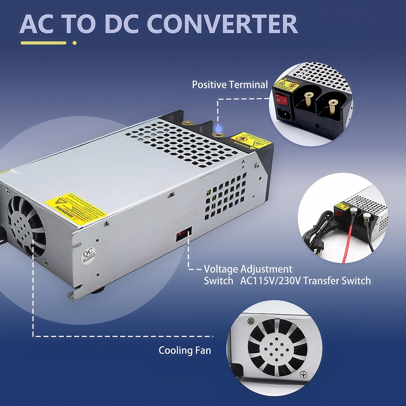 - ⭐【NEW VERSION AC TO DC CONVERTER】New Upgrade 800w converter build with Imported Aluminum alloy shell ,Built-in wire integrated design, Dual power connection methods, Very convenient for 12V devices with clamps, Our 66 amp power supply come with ul power cord ,12v converter with switch ,wire lugs,metal clip and screw.Super convenient for devices with clamps. You can clamp to the two cylindrical contacts directly. It is a patent design of 12v dc power converter.
