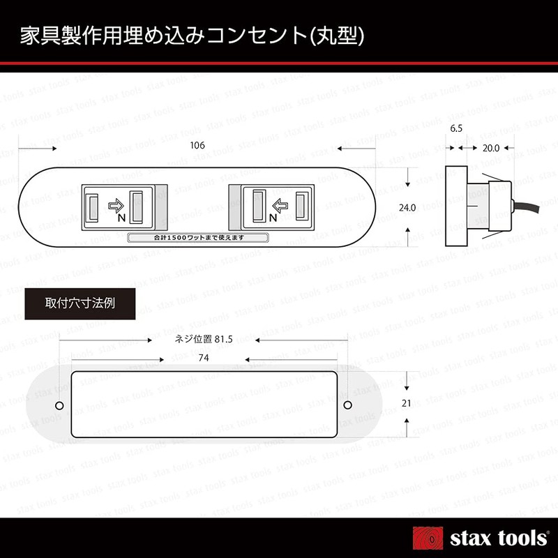 DIY Woodworking Outlet, Simple [stax tools] For Furniture Making Recessed Outlet 2 Outlets (Round) (Black)