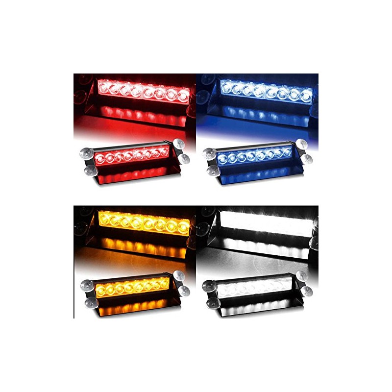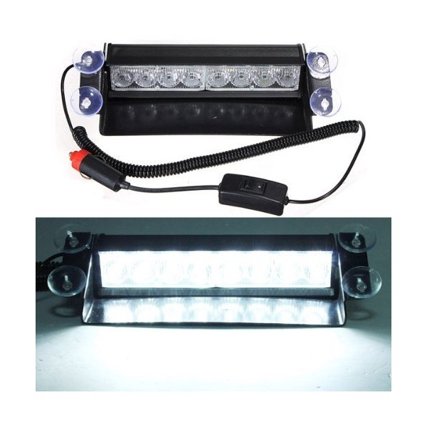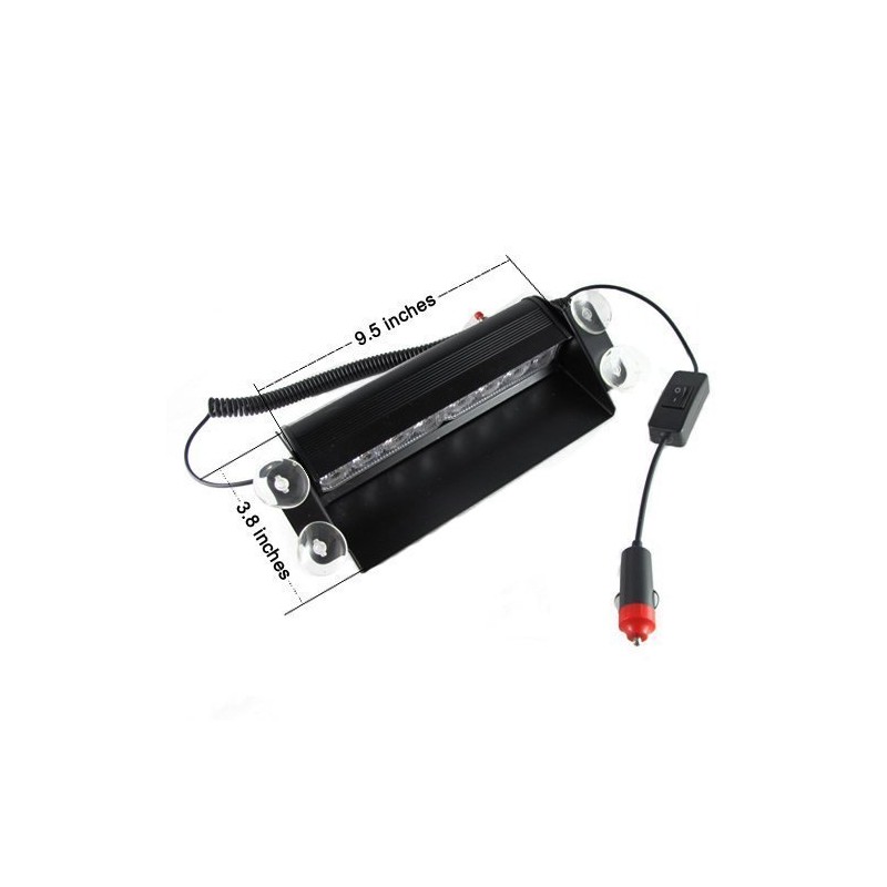 Includes: 1x 8-LED Truck Strobe Lights/1x Cigarette lighter adapter / 4 x Suction cups Installation: Plug this into your 12V cigarrette lighter Unit Dimensions: 9.5" ( wide ) x 4" ( deep ) x 2" ( height ) / Lifepan: 30000 hours 3 flashing/strobe modes: a. Flash one color 8 times and switches off to the other. b. All lights at once. c. All LED flash several times. Easy to install, Brackets and suction cups preinstalled, and plug into a 12V cigarette lighter. This Emergency 8-LED Truck Strobe Lights is great for emergency workers, postal service, construction vehicle, security etc. High Quality, Professional Grade products. Designed for DIY installation. Latest ultra bright LED chip-set technology. 100% Weatherproof and long lasting. There are 3 flashing modes: a. Flash one color 8 times and switches off to the other. b. All lights at once c. All LED Package Contents: 1x 8-LED Truck Strobe Lights 1x Cigarette lighter adapter 4 x Suction cups