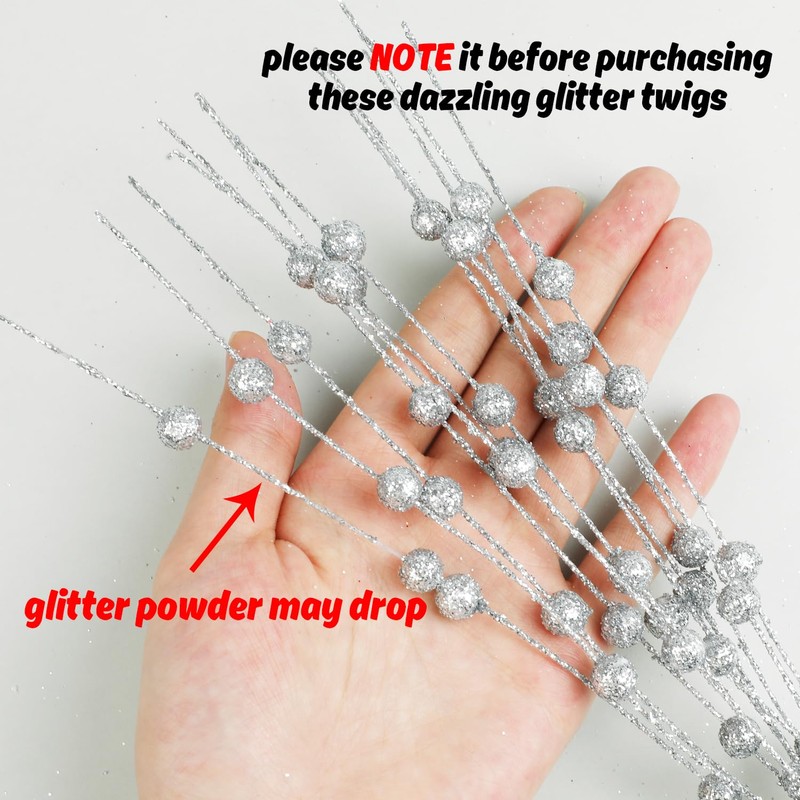 - đGreat Length - Each glitter stem size 16.2in/41cm in length. The berry picks is about 7.87in/20cm long. The glitter ball is 0.2in/5mm in diameter.