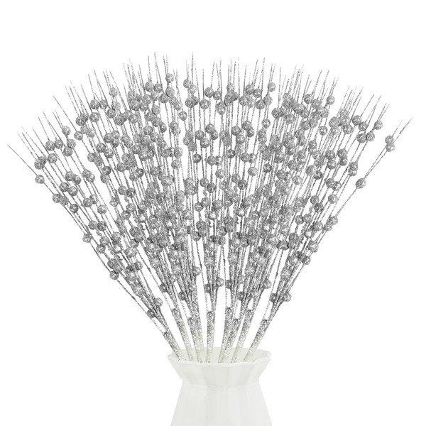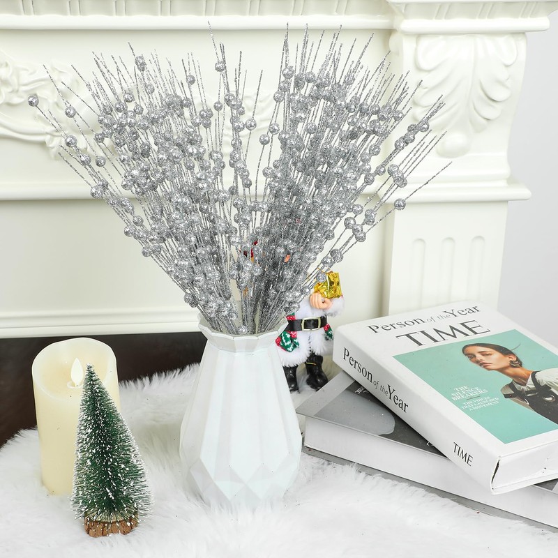DIYASY Silver Berry Stems for Christmas Tree Ornaments, 16.2 in Picks and Sprays Artificial Branches Xmas Tree Filler Holiday Wreath Garland Decorations Home Décor