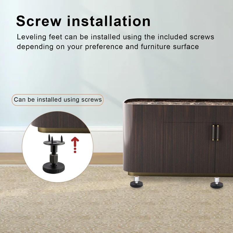 - 🪑 Zwei Montagemöglichkeiten: Der nivellierfüße kann je nach vorliebe und oberfläche ihrer möbel mit dem mitgelieferten doppelseitigen 3m-klebeband oder den mitgelieferten schrauben montiert werden.