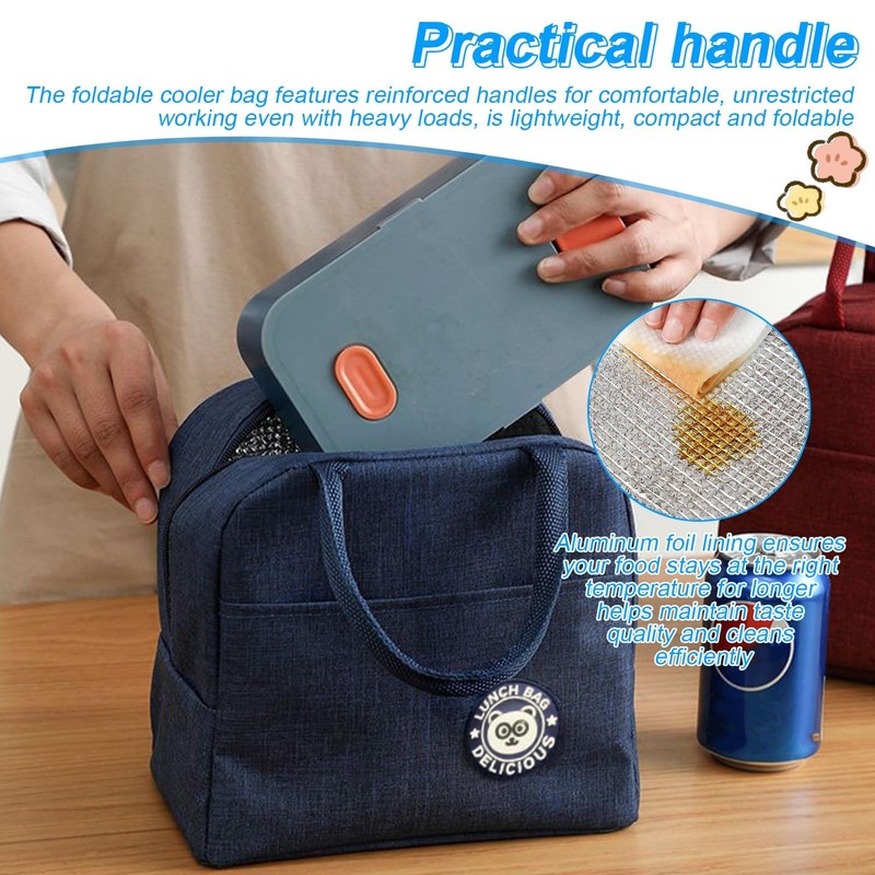 - Keep hot or cool: the lunch box bag heat-insulating aluminium foil inside is often used to keep the temperature of hot or cold objects. This insulated bag is ideal for transporting hot food or cold drinks and keeping hot or cool for several hours